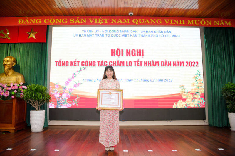 Công ty cổ phần Lương thực thành phố Hồ Chí Minh vinh dự là tập thể được nhận bằng khen của UBND TP.HCM vì có thành tích trong công tác tổ chức chăm lo Tết Nhâm Dần 2022 – Bà Đỗ Ngọc Nga, Phó Tổng giám đốc Công ty đã đến dự và thay mặt Công ty nhận Bằng khen.