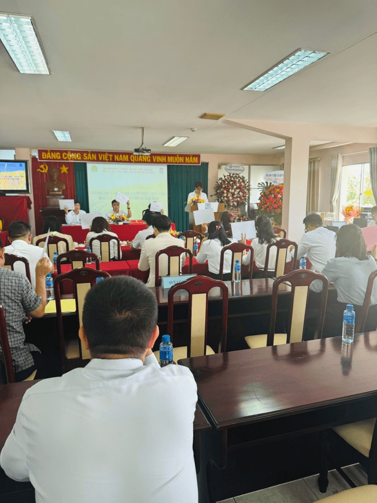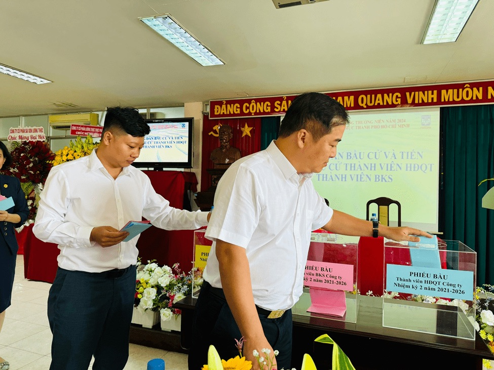 Đại biểu/Cổ đông và người đại diện theo ủy quyền dự Đại hội đại diện cho 28.853.314 cổ phần có quyền biểu quyết đã biểu quyết tán thành đạt tỷ lệ 100% thông qua chương trình, quy chế làm việc, quy chế đề cử ứng cử và bầu cử thành viên Hội đồng quản trị nhiệm kỳ II năm 2021 – 2026; các báo cáo của Hội đồng quản trị (HĐQT), Ban kiểm soát, Ban điều hành về kết quả hoạt động năm 2023 và kế hoạch năm 2024; báo cáo tài chính đã kiểm toán năm 2023 và các tờ trình của HĐQT tại Đại hội về: Thực hiện giao dịch đối với cá nhân, tổ chức có liên quan, về kế hoạch đầu tư xây dựng cơ bản và mua sắm, thuê tài sản cố định trong năm 2024; về tiền lương, thù lao năm 2023 và kế hoạch tiền lương, thù lao năm 2024; về miễn nhiệm thành viên HĐQT và bầu thay thế thành viên HĐQT nhiệm kỳ II năm 2021 – 2026.
