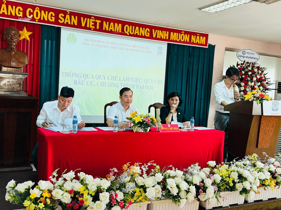 Trong chuỗi các sự kiện quan trọng năm 2024, Công ty CP Lương thực Thành phố Hồ Chí Minh với sự chuẩn bị kỹ lưỡng từ nội dung đến hình thức, sáng ngày 25/4/2024 đã tổ chức thành công cuộc họp Đại hội đồng cổ đông thường niên năm 2024 (gọi tắt là Đại hội).